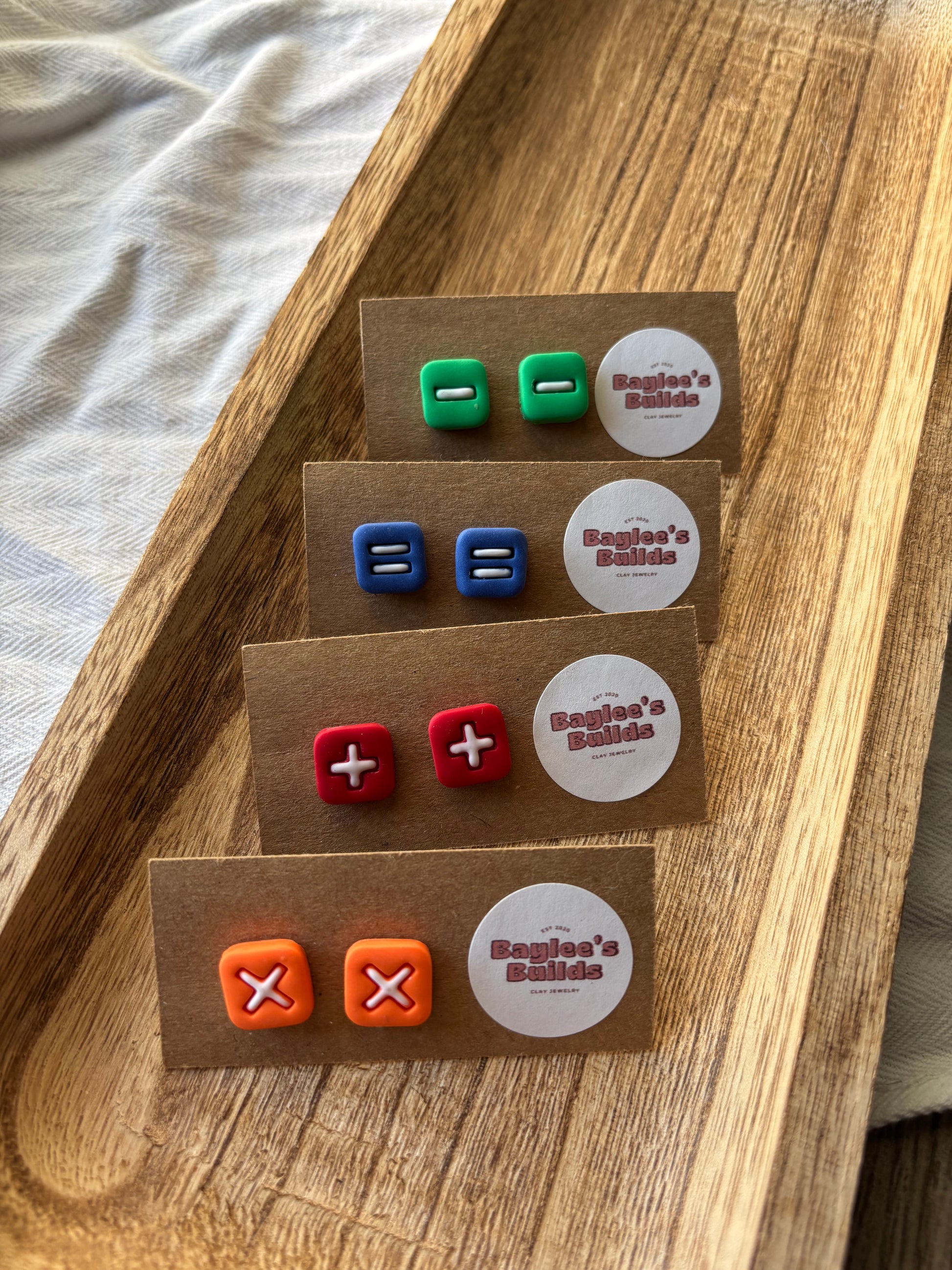 Handcrafted clay earrings with nickel free and hypoallergenic studs.Due to being handmade, each set may have slight variations from the pictures or other sets. Such as small bubbles, faint marks, or slight differences in color/pattern.